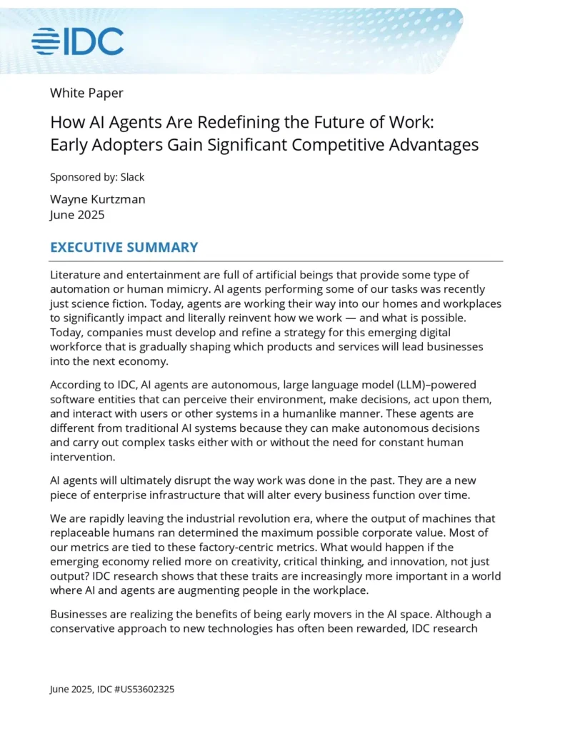 According to IDC, “every company and leader needs to be looking at collaboration as a strategic priority,” and the companies that integrate AI agents into their collaboration stack first will gain a competitive edge over laggards.