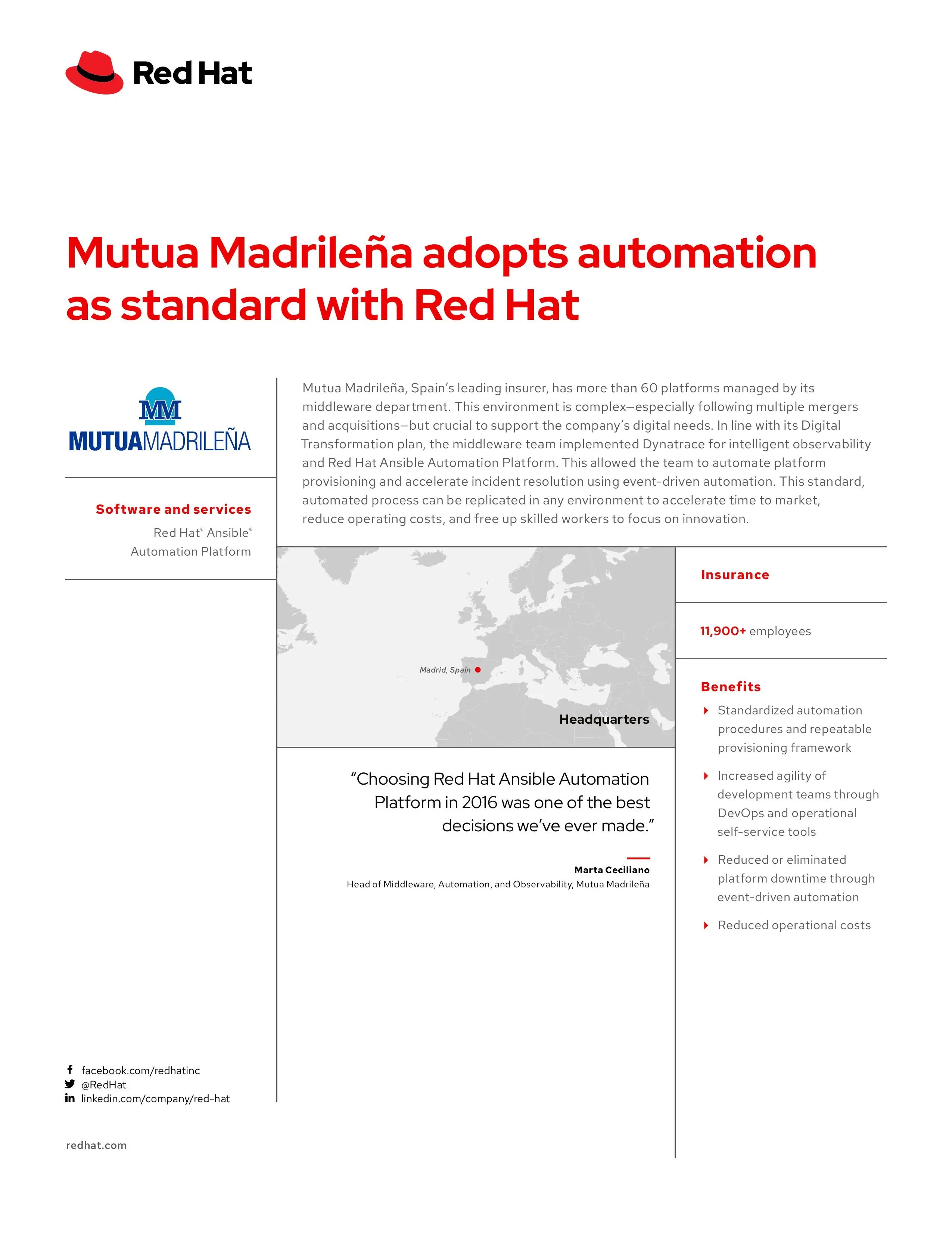 Find out how Spain’s leading insurer implemented Dynatrace for intelligent observability and Red Hat Ansible Automation Platform, allowing the IT team to automate platform provisioning and accelerate incident resolution using event-driven automation. This standard, automated process can be replicated in any environment to accelerate time to market, reduce operating costs, and free up skilled workers to focus on innovation.